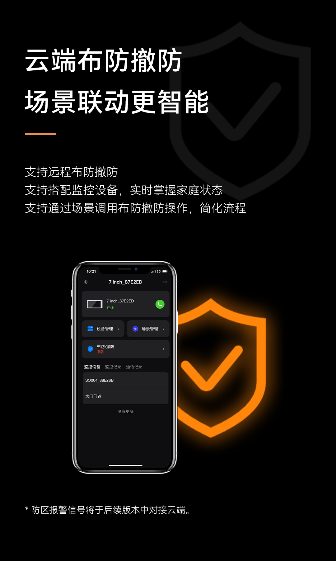 *防區(qū)報警信號將于后續(xù)版本中對接云端。