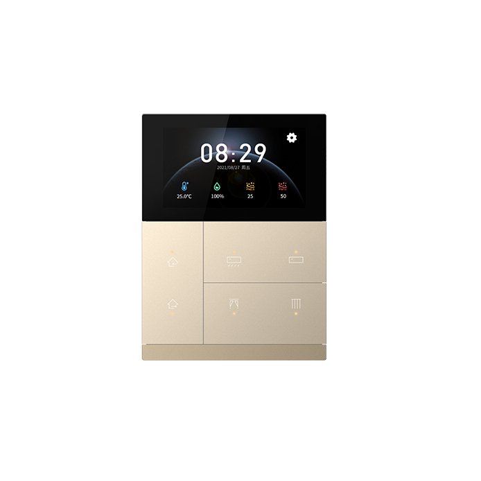 KNX安全3聯(lián)6鍵智能觸摸面板不僅支持屏幕觸控操作,而且支持按鍵操作,帶來雙重體驗(yàn)感的同時(shí),也集成了照明、窗簾、場(chǎng)景、溫控、空調(diào)、新風(fēng)系統(tǒng)、背景音樂、RGB和RGBW調(diào)色、色溫控制等功能,及設(shè)備狀態(tài)顯示,并且內(nèi)置溫度和濕度傳感器,可檢測(cè)本地環(huán)境溫度和濕度,滿足大部分的日常應(yīng)用。 支持KNX安全